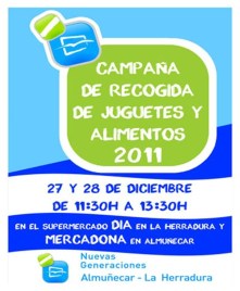 NNGG del PP de Almuñécar y La Herradura procederán a la recogida de alimentos y juguetes los días 27 y 28 de diciembre a partir de las 11:30 horas en las puertas del Mercadona de Almuñécar y el Día de La Herradura.