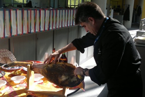 El jefe de cocina del Hotel Helios de Almuñécar ofreció una exhibición de corte de jamón ibérico que los presentes pudieron degustar posteriormente.