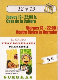 Vuelve el teatro esta semana a los escenarios de la Casa de la Cultura de Almuñécar y del Centro Cívico de La Herradura. Lo hace con el grupo Teatroterapia y una divertida comedia, que se representará el jueves 12, en la Casa de la Cultura de Almuñécar, y el viernes 13, en el Centro Cívico de La Herradura, contando con la colaboración del Ayuntamiento de Almuñécar.