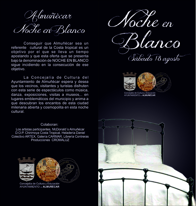 «Conseguir que Almuñécar sea un referente cultural de la Costa tropical es un objetivo por el que se lleva un tiempo apostando. Esta oferta que se presenta bajo la denominación de ‘Noche en Blanco’ sigue incidiendo en la consecución de ese objetivo», recuerdan desde la organización que corre a cargo de la citada concejalía contando con la colaboración de la Asociación Todo Cultura.