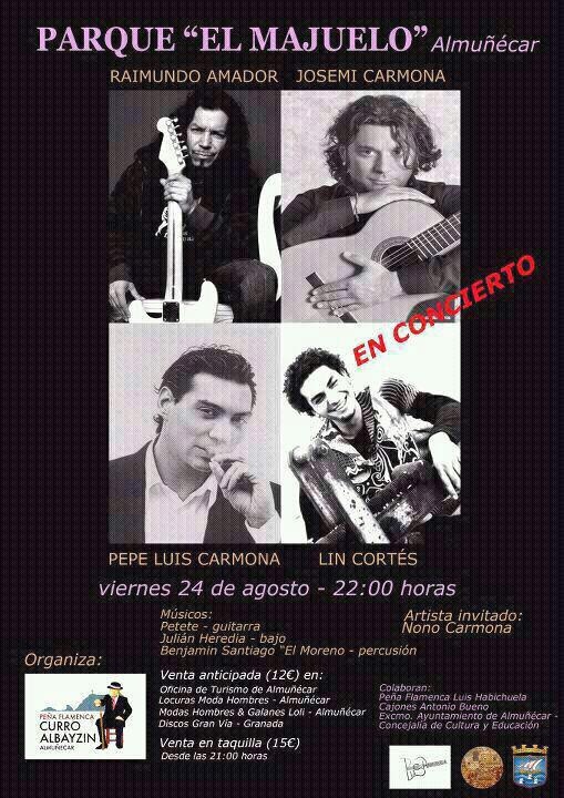 El lado más flamenco de Raimundo Amador, Josemi Carmona, Pepe Luis Carmona, Lin Cortes y como invitado Nono Carmona. Todo ello organizado por la historia viva del flamenco Curro Albaycín y la colaboración del Ayuntamiento de Almuñécar.