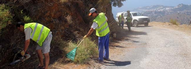 La Concejalía de Medio Rural del Ayuntamiento de Almuñécar lleva a cabo la limpieza y desbroce del acceso al Pago de Cantalobos por la urbanización Rancho Río Verde.