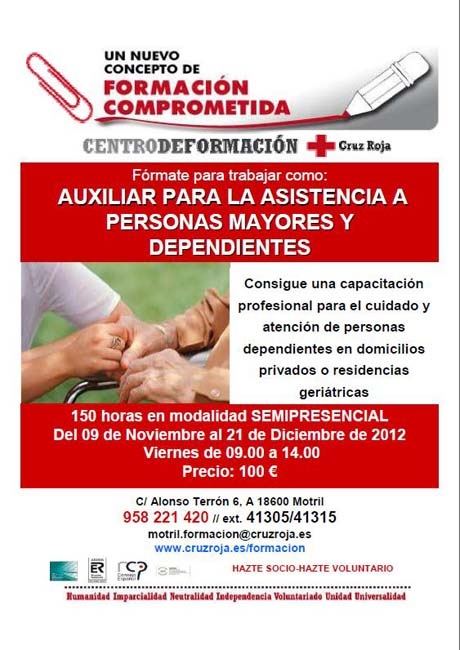 MOTRIL. El Departamento de Formación de la Asamblea Comarcal de Cruz Roja en Motril informa que de las acciones formativas que desde Cruz Roja oferta comienzan en el mes de noviembre.