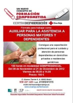 «Auxiliar para la asistencia a personas mayores y dependientes». Del 09 de noviembre al 21 de diciembre, en la modalidad semipresencial, con una duración de 150 horas.