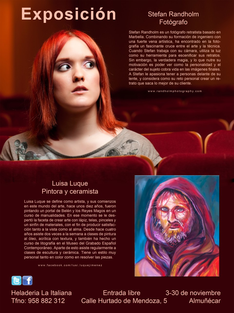 ALMUÑÉCAR. La Italiana Café tiene el placer de invitarnos a la apertura de la exposición de fotografía, pintura y cerámica a cargo del sueco afincado en Marbella Stefan Randholm, y su esposa Luisa Luque, que tendrá lugar el próximo 3 de Noviembre a las 17:00 hrs. Como de costumbre se ofrecerá un pequeño ágape de bienvenida a los asistentes, y se hará una pequeña introducción al recorrido cultural de ambos artistas.