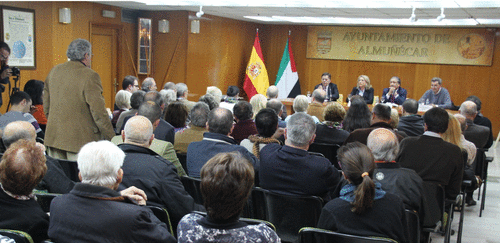 El acto, organizado por el Consistorio sexitano y promovido por la alcaldesa, Trinidad Herrera, quien dio la bienvenida a los conferenciantes tras la presentación del periodista Tomás Navarro, tenía lugar tras el reconocimiento de Palestina como Estado Observador por parte de la ONU.