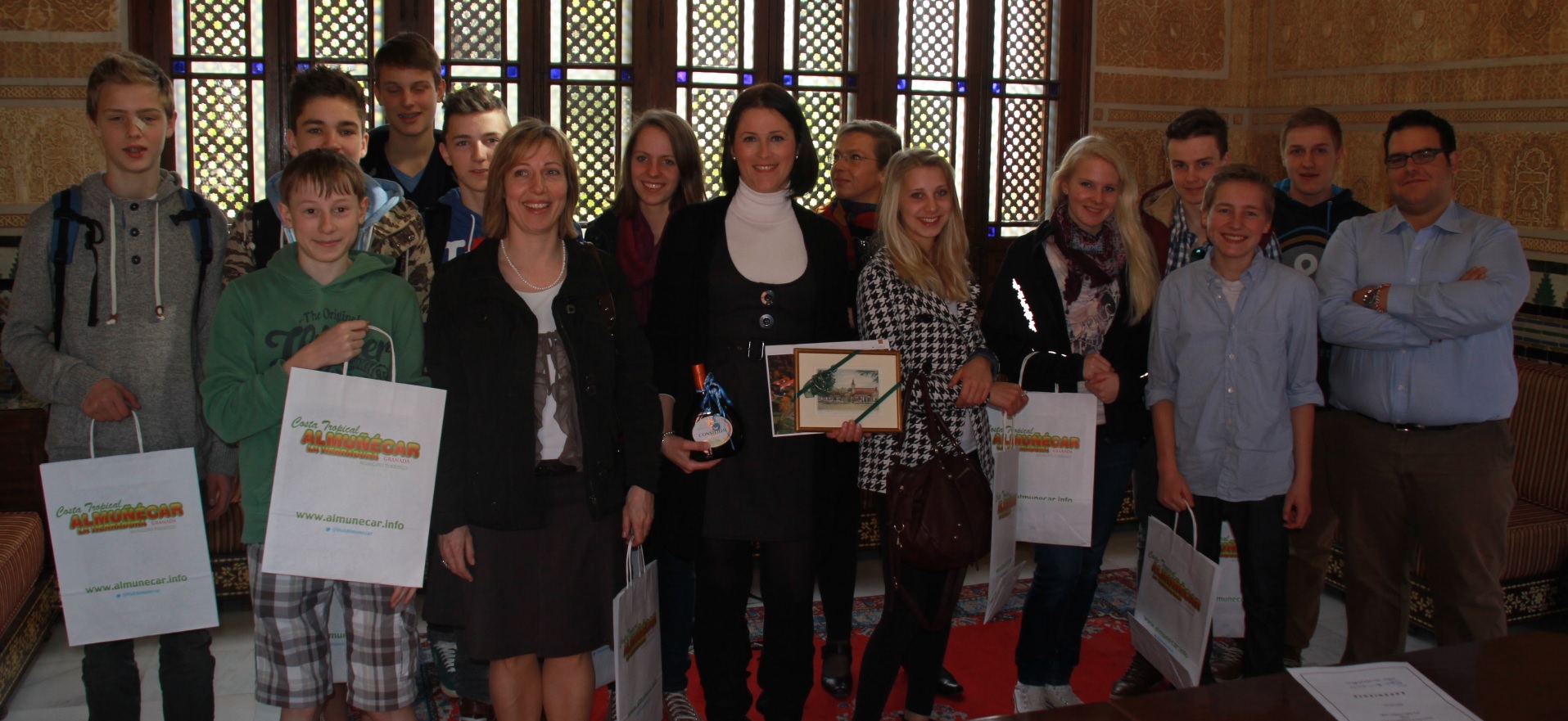 ALMUÑÉCAR. La concejal de Relaciones Instituciones, María del Mar Medina, ha dado la bienvenida hoy a un grupo de estudiantes y profesora de la ciudad alemana de Fürstenfelbruck, que participan en un intercambio con alumnos del colegio Almuñécar Internacional School.