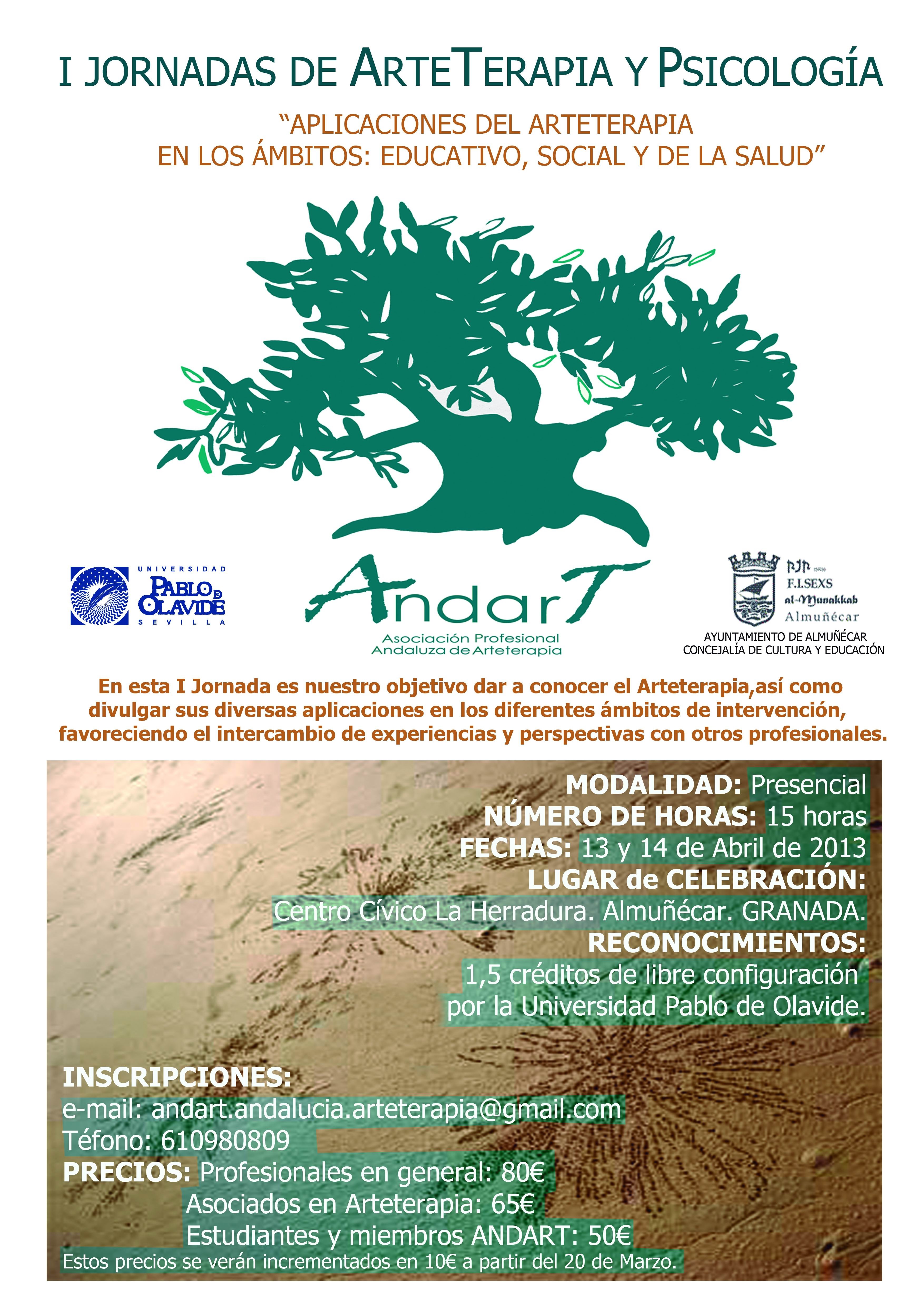 Entre los objetivos de estas jornadas, que son dirigidas académicamente por Arsenio Moreno Mendoza, de la Universidad Pablo de Olavide de Sevilla, y coordinadas por la psicóloga y arteterapeuta María del Carmen Delgado Moran, están “la divulgación de las aplicaciones del Arteterapia en los ámbitos profesionales y el intercambio profesional de experiencias y comunicaciones entre arteterapeutas y psicólogos”, según avanzó Ruano haciéndose eco del programa tramitado por la Asociación Profesional Andaluza de Arteterapia.