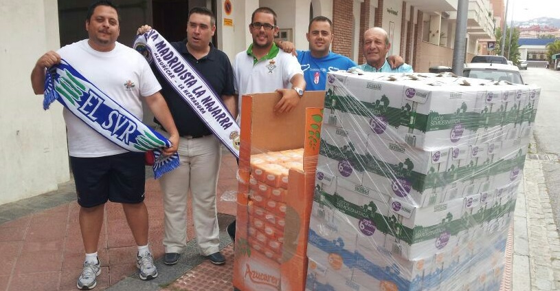 ALMUÑÉCAR. Las peñas futbolísticas del Real Madrid, Betis, Granada y Real Sociedad, han traducido su hermanamiento solidario, que celebraron durante el Primero de Mayo, con miles de kilos de productos de primera necesidad que han hecho entrega a Cáritas estos días, una vez hecho el recuento definitivo de lo recaudado.