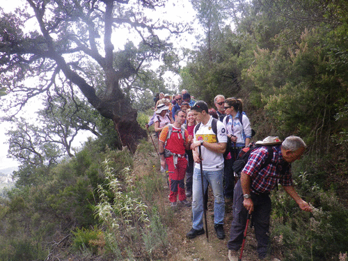La ruta se desarrolló en una jornada soleada y perfecta que acompañó al grupo sexitano. “Pudimos divisar el conocido cortijo ‘Burgos’ y el cortijo ‘Los Alcántara’, la población de Jolúcar, y luego, tras una serie de senderos entre alcornoques, extensos pinares, algún castaño… hasta llegar al emblemático y gran cortijo de ‘las Piedras’. Aquí hicimos una profusa visita de las ruinas del mismo, atesorando su esplendor de antaño”, explicó Garín.