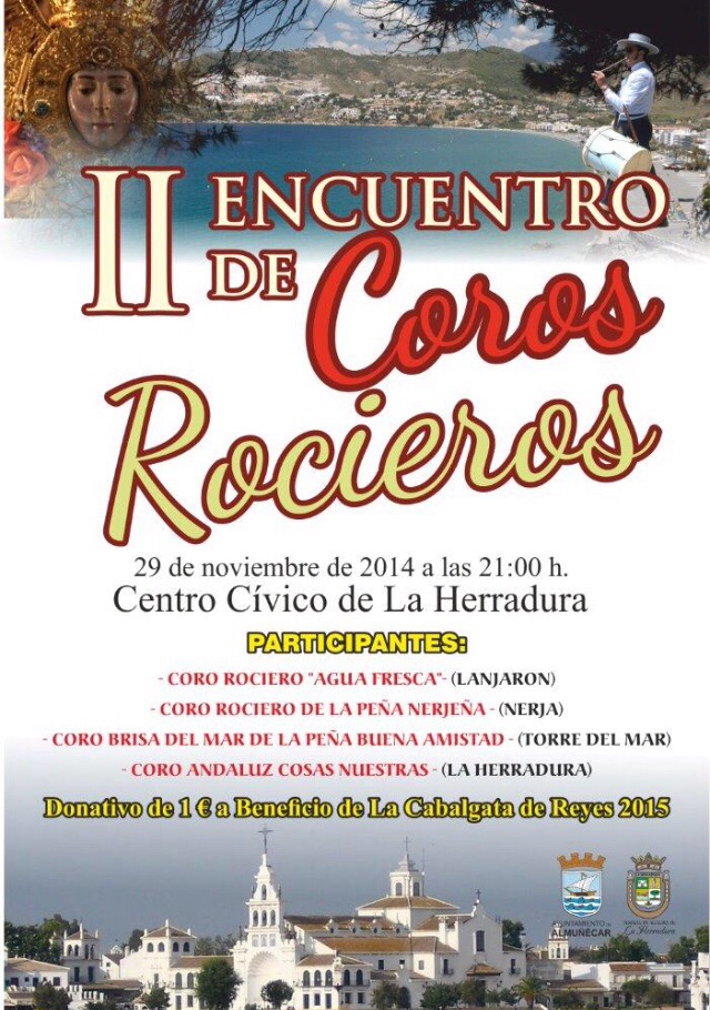 En el evento, que cuenta con la colaboración del Ayto. de Almuñécar y la Tenencia de Alcaldía de La Herradura, participarán cuatro coros: Coro Rociero “Agua Fresca”, de Lanjarón; Coro Rociero “Peña Nerjeña”, de Nerja; Coro «Brisa del Mar» de la «Peña Buena Amistad», de Torre del Mar, y Coro Andaluz “Cosas Nuestras”, de La Herradura.