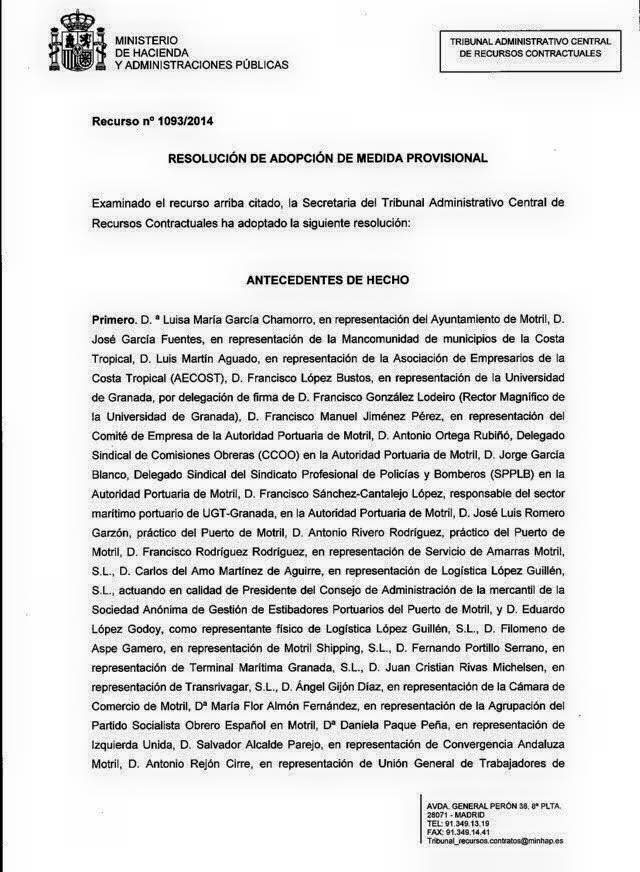 MOTRIL. Luisa García Chamorro, alcaldesa de Motril, ha informado que el Tribunal Administrativo Central de Recursos Contractuales ha acordado suspender el procedimiento de contratación de la gestión de servicios de la línea marítima de interés público Málaga – Melilla y Almería – Melilla de manera provisional hasta tanto en cuanto no se dicte resolución del recurso interpuesto por la plataforma que aglutina a más de una veintena de organismos oficiales, asociaciones y otros colectivos de la vida económica y social de Motril.
