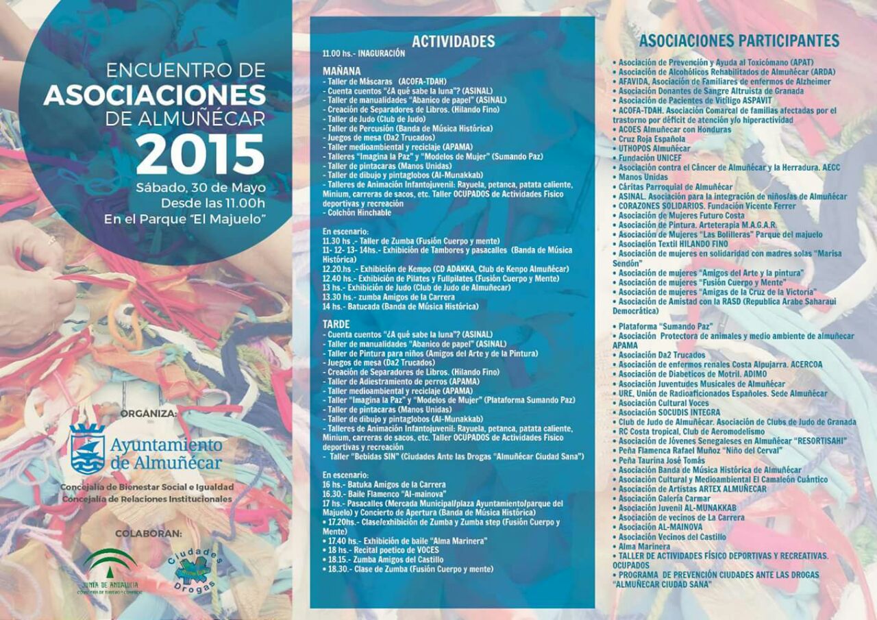 ALMUÑÉCAR. El Parque El Majuelo acogerá el sábado, 30 de mayo, la celebración del Encuentro de Asociaciones y Colectivos Socio – Culturales de Almuñécar – La Herradura 2015.