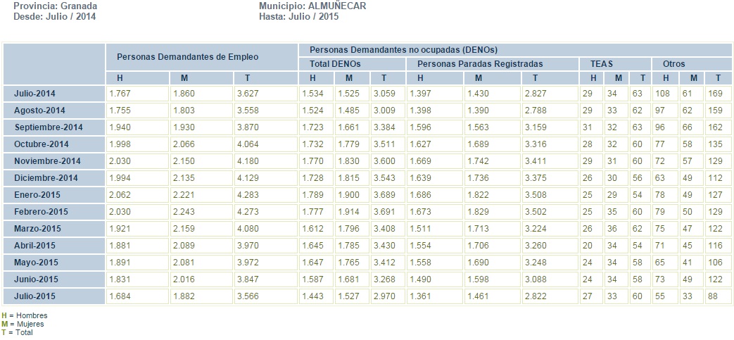 ALMUÑÉCAR. Respecto al mes de julio de 2014, el paro interanual registrado habría bajado en 5 personas.