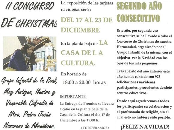 ALMUÑÉCAR. El Grupo Infantil dependiente del Grupo Joven de la Cofradía del Nazareno, tras organizar para la Navidad 2015 / 2016 el «2º Concurso de Christmas», INFORMA: