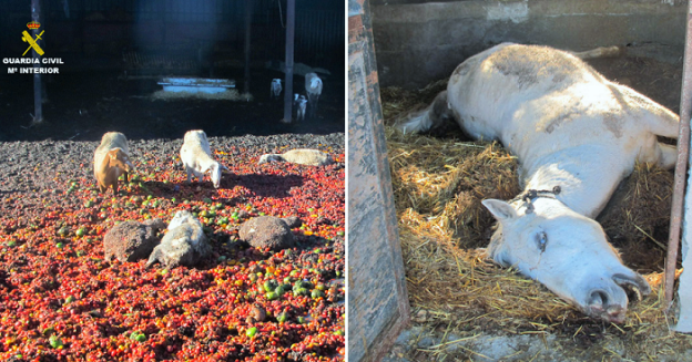 La patrulla del Seprona de la Guardia Civil de Motril acudió a inspeccionar una granja de ese término municipal el pasado día 28 de noviembre junto con un veterinario de la OCA de la Costa de Granada. Lo primero que encontraron fueron 4 ovejas que habían muerto de hambre porque se habían quedado atrapadas en su propio estiércol. Y más tarde localizaron 3 caballos y 4 asnos con una desnutrición severa y una patente falta de atención veterinaria.