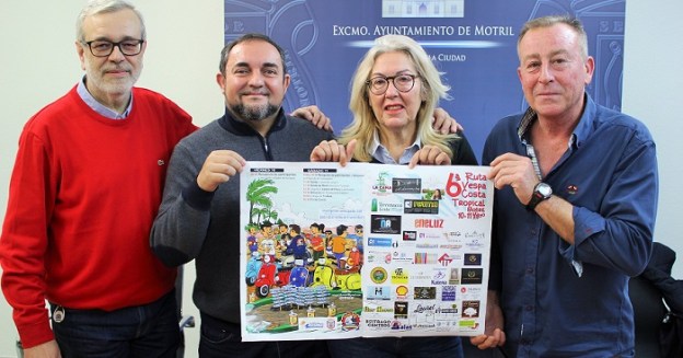 La teniente de alcalde de Seguridad Ciudadana y Movilidad, María Ángeles Escámez, el concejal de Deportes, Miguel Ángel Muñoz, y el presidente del Vespa Club Motril, Manolo Gálvez, han presentado la 6ª Ruta Vespa Costa Tropical que tendrá lugar durante los días 10 y 11 del próximo mes de mayo, con la participación de unas 400 personas y 200 vespas.