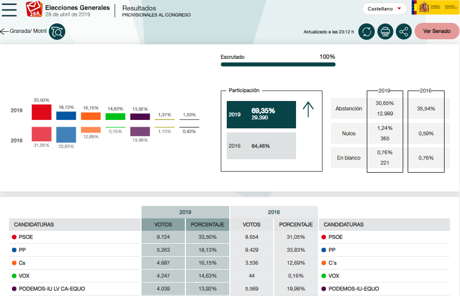 El PSOE gana cómodamente en Motril y el PP se hunde Deja un comentario MOTRIL. El PSOE obtiene una cómoda victoria en la capital de la Costa Tropical donde el PP pierde algo menos de la mitad de sus votantes respecto a las elecciones generales de 2016. Comparte esto: Haz clic para compartir en WhatsApp (Se abre en una ventana nueva) WhatsApp Haz clic para compartir en Facebook (Se abre en una ventana nueva) Facebook Haz clic para compartir en X (Se abre en una ventana nueva) X Haz clic para compartir en Pinterest (Se abre en una ventana nueva) Pinterest Más Haz clic para imprimir (Se abre en una ventana nueva) Imprimir Haz clic para enviar un enlace por correo electrónico a un amigo (Se abre en una ventana nueva) Correo electrónico Haz clic para compartir en LinkedIn (Se abre en una ventana nueva) LinkedIn Haz clic para compartir en Telegram (Se abre en una ventana nueva) Telegram Haz clic para compartir en Reddit (Se abre en una ventana nueva) Reddit Haz clic para compartir en Tumblr (Se abre en una ventana nueva) Tumblr Haz clic para compartir en Pocket (Se abre en una ventana nueva) Pocket Me gusta Cargando... Relacionado
