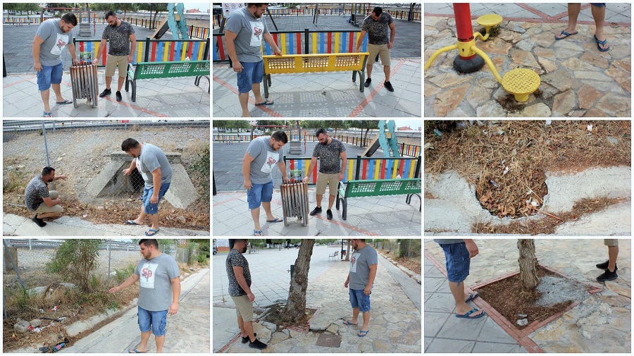 “En el mayor parque y zona verde de Carchuna, como se puede observar, hay raíces que levantan las aceras, tenemos agujeros en el suelo y en las alambradas”, ha señalado. “Además, tenemos farolas fundidas, una fuente que funciona de forma intermitente y, por si fuera poco, losetas rotas que han provocado varias caídas”, ha agregado Juan Alberto Ferrer Correa.