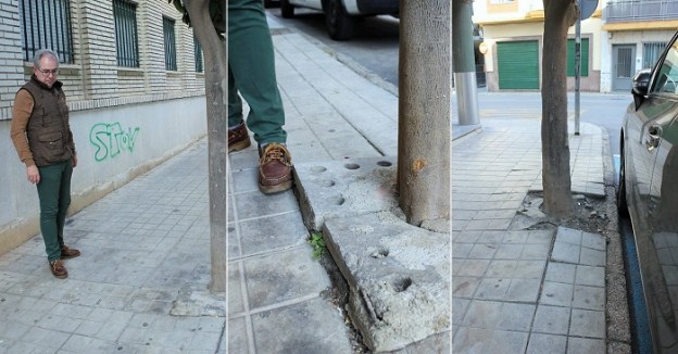 MOTRIL. Francisco Ruiz señala los problemas de movilidad y las barreras arquitectónicas que presenta esta calle, “cuyas aceras, además de ser bastante estrechas, están en muy mal estado, con tramos de losetas levantadas y bordillos rotos”.