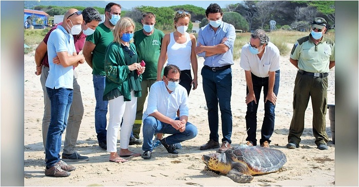 El director general de Medio Natural, Biodiversidad y Espacios Protegidos de la Consejería de Agricultura, Ganadería, Pesca y Desarrollo Sostenible, Ángel Sánchez, ha liberado en la playa de Los Lances (Tarifa, Cádiz) un ejemplar de tortuga boba encontrado por un ciudadano en julio del año pasado en la capital gaditana. En la suelta han participado también la subdelegada del Gobierno andaluz en el Campo de Gibraltar, Eva Pajares, y el delegado territorial de Desarrollo Sostenible en la provincia de Cádiz, Daniel Sánchez.