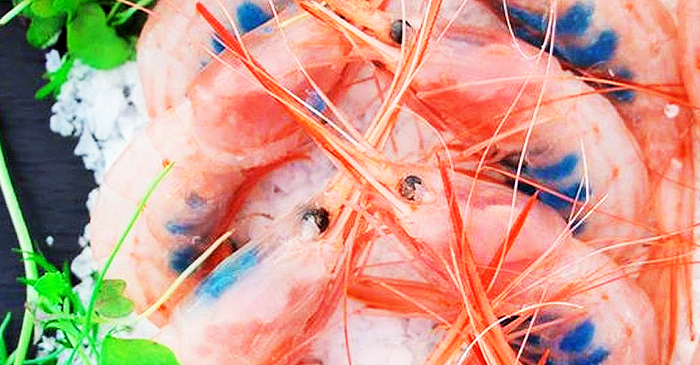 Las azules huevas presentes en el vientre de las quisquillas son características de esta especie que se distribuye por el Mediterráneo y el Atlántico.
