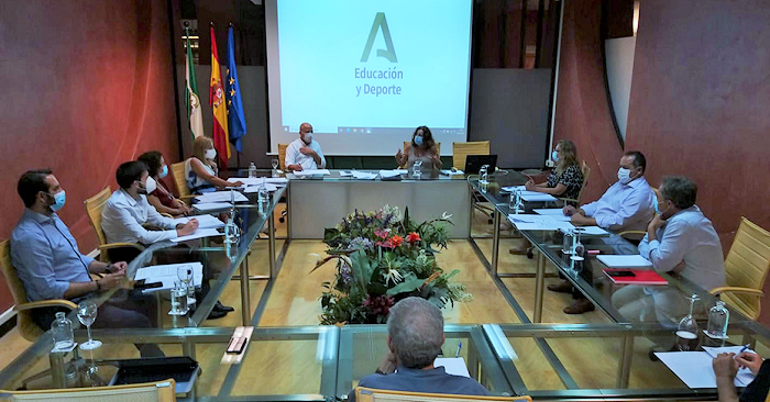 El consejero, Javier Imbroda, ha mantenido hoy una nueva reunión con los responsables de los centros directivos que componen su departamento para evaluar el desarrollo del Plan de Acción para el curso 2020-21, dotado con un presupuesto de 600 millones de euros, y que permitirá reforzar las plantillas con más de 6.000 docentes, 1.500 trabajadores de limpieza, un plan de formación de docentes o la dotación de recursos tecnológicos para paliar los efectos del Covid-19 en el sistema educativo andaluz.