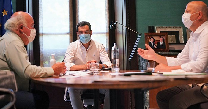 Durante la reunión, los consejeros han trasladado al presidente andaluz las actuaciones que han llevado a cabo, ya desde el Estado de Alarma, para trabajar en el concepto de ‘Aulas seguras’ dentro la difícil coyuntura provocada por la pandemia de la Covid-19.