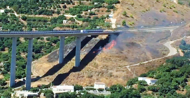 ALMUÑÉCAR. Esta mañana, a eso de las 6:00 horas, se declaró un pequeño incendio en una zona de monte bajo cercana al cortijo Prim de Torrecuevas, debajo de la autovía.