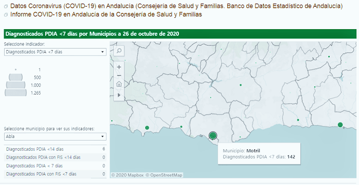 Según la información recogida, a 26 de octubre, en la Costa Tropical los diagnosticados PDIA (Pruebas Diagnósticas de Infección Activa / Test de antígenos de segunda generación) en la última semana serían los siguientes: