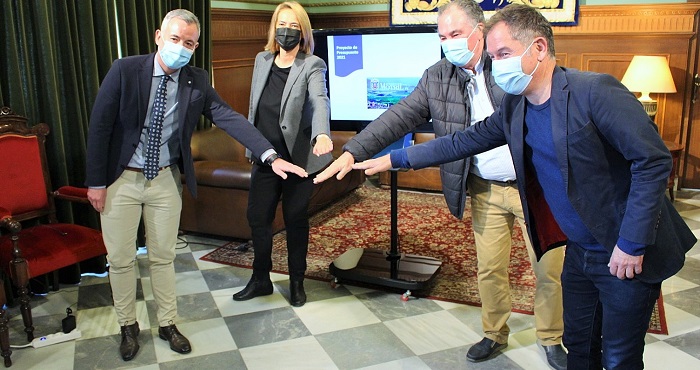 La alcaldesa de Motril, Luisa García Chamorro, y los portavoces de los grupos municipales del Partido Popular, Nicolás Navarro; Más Motril, Antonio Escámez, y Ciudadanos, José Lemos, que integran el gobierno local de coalición, han presentado esta mañana el Presupuesto de la ciudad para el ejercicio 2021 que se ha diseñado de manera consciente, frente a los previsibles efectos de la crisis sanitaria y económica, y que asciende a 53.033.785,27 euros, tanto en el capítulo de ingresos como en el de gastos. Los portavoces del Gobierno local han coincidido en destacar el marcado carácter social de las cuentas públicas de la ciudad de Motril para el año 2021 que reflejan el mayor compromiso social de los presupuestos municipales de la historia del Ayuntamiento.