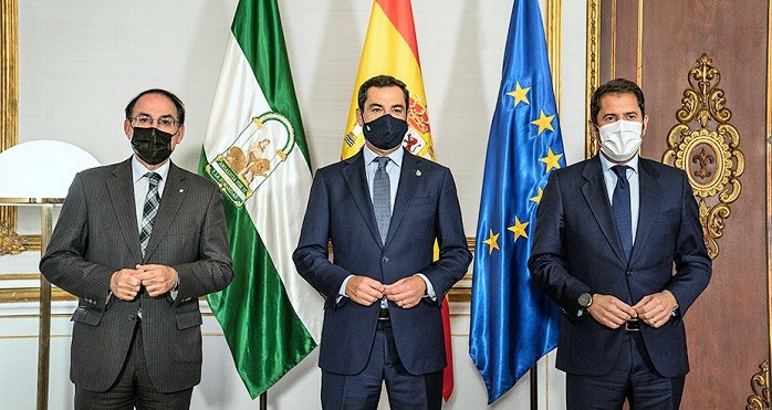 El presidente de la Junta de Andalucía, Juanma Moreno, se ha reunido hoy en el Palacio de San Telmo, dentro del marco del Plan de Apoyo a Pymes y Autónomos, con el presidente de la Confederación de Empresarios de Andalucía (CEA), Javier González de Lara, y con el presidente de la Confederación Española de la Pequeña y Mediana Empresa (CEPYME), Gerardo Cuerva.