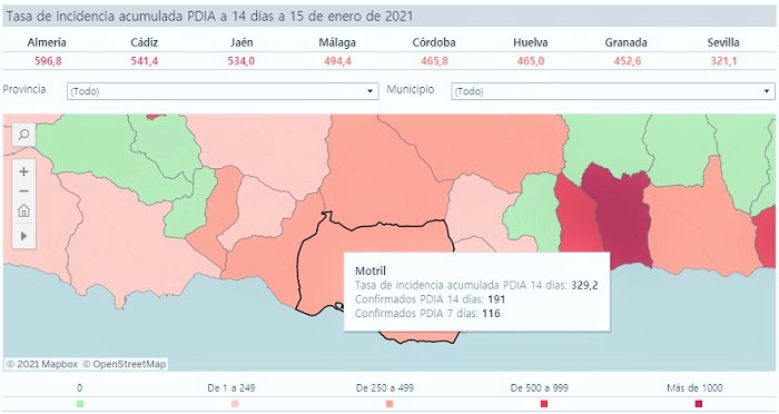 Según la información recogida, a 15 de enero, en la Costa Tropical los diagnosticados PDIA (Pruebas Diagnósticas de Infección Activa / Test de antígenos de segunda generación) en los últimos 14 días serían los siguientes: