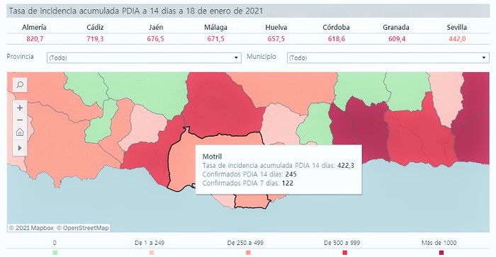 - Catorce municipios pertenecientes a la Mancomunidad de Municipios de la Costa Tropical de Granada registraron a 18 de enero 534 casos confirmados de Covid-19 en los últimos 14 días.