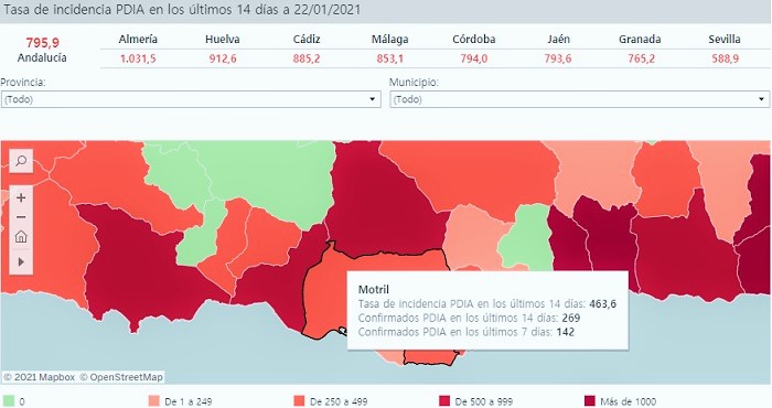 - Motril: 269 (463,6 casos / 100 mil hab.)