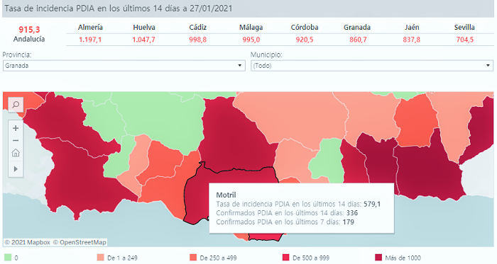 - Motril: 336 (579.1 casos / 100 mil hab.)