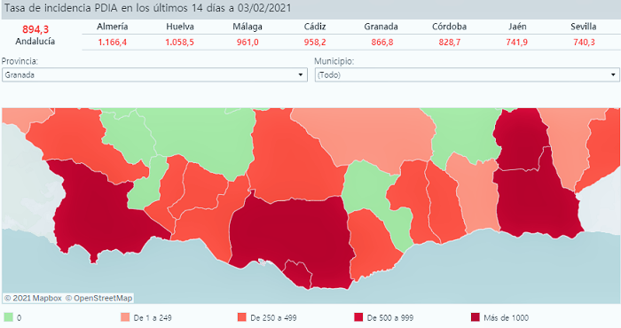 - Quince municipios pertenecientes a la Mancomunidad de Municipios de la Costa Tropical de Granada registraron a 3 de febrero 707 casos confirmados de Covid-19 en los últimos 14 días.