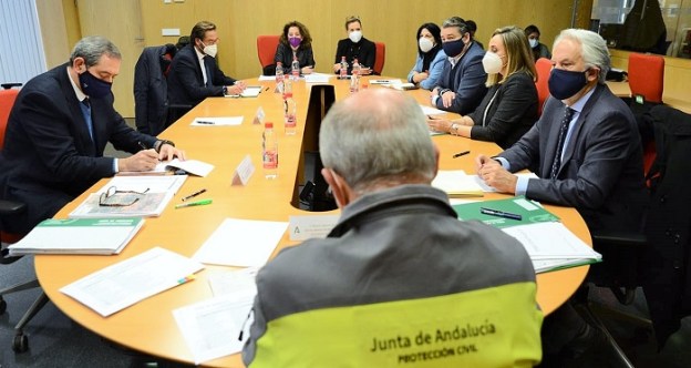 La consejera de Fomento, Infraestructuras y Ordenación del Territorio, Marifrán Carazo, ha presidido el encuentro junto al viceconsejero de la Presidencia, Administración Pública e Interior, Antonio Sanz, la subdelegada del Gobierno, Inmaculada López Calahorro , y el director general de Emergencias y Protección Civil, Agustín Muñoz.
