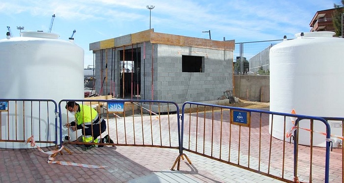 Para ello, se está construyendo una instalación provista de un aljibe donde se aloja el agua de escorrentías que luego, tras el preceptivo tratamiento, pasa a dos depósitos, cada uno con capacidad para 8.000 litros. El aljibe, también llamado tanque de tormentas, es una infraestructura de la red de recogida de aguas pluviales, que puede albergar hasta 27.000 litros. El bombeo del aljibe a los depósitos se hará mediante energía solar.