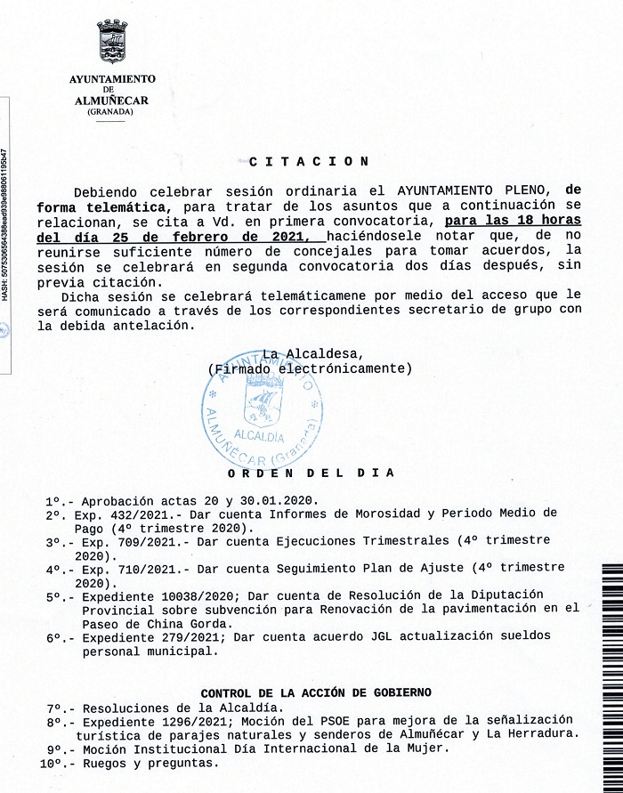 “La prueba más evidente de esto ha sido el Pleno ordinario de febrero, celebrado en el día de hoy, jueves 25, de forma telemática. Después de dos meses sin Pleno ordinario, el gobierno Herrera solo ha planteado meras cuestiones de trámite, sin una sola iniciativa que redunde en beneficio de los negocios del municipio, ni proyectos impulsados por el Ayuntamiento. Un pleno de 14 minutos, en el que más de la mitad se ha empleado en hablar de la “señalítica” de los senderos”, afirman desde CA.