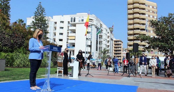 MOTRIL. Al izado oficial de la Bandera de Andalucía, junto a la Fuente de La Esperanza, ha precedido la inauguración de la escultura que, desde hoy, honra en Motril la memoria de las víctimas del Covid.