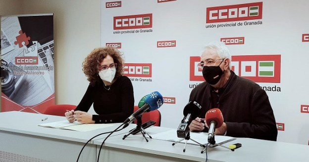 GRANADA. La secretaria general de CCOO de Andalucía, Nuria López, ha ofrecido hoy una rueda de prensa junto al secretario general de CCOO de Granada, Ricardo Flores, donde han analizado la situación de la provincia de Granada: la preocupación por las altas tasas de paro que tiene la provincia y el conjunto de Andalucía. “La pandemia ha evidenciado las carencias de nuestra estructura productiva, y en ella destaca la escasa inversión en I+D+i”, ha señalado López Marín.