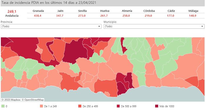 - 16 municipios pertenecientes a la Mancomunidad de Municipios de la Costa Tropical de Granada registraron a 23 de abril 402 casos confirmados de Covid-19 en los últimos 14 días.