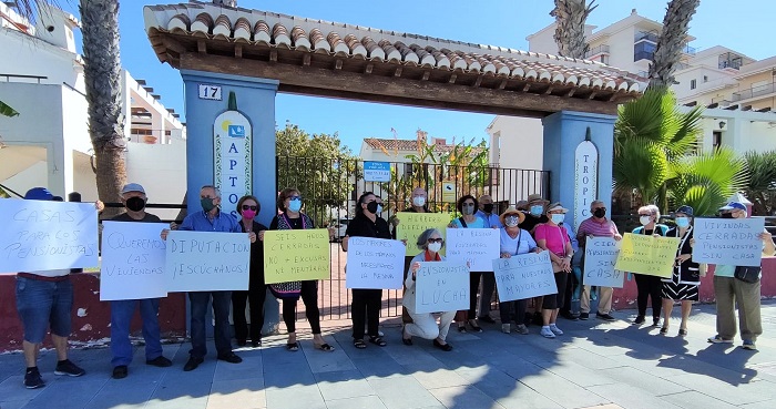 ALMUÑÉCAR. La Asociación de Pensionistas de Andalucía (APA) se ha concentrado esta mañana a las puertas del complejo Turismo Tropical, en el paseo de San Cristóbal de Almuñécar, que se encuentra cerrado desde el año 2015.