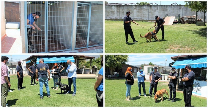 Durante la presentación a los miembros del equipo de gobierno, los responsables del centro realizaron diversas demostraciones con canes entrenados en la detención de sustancias estupefacientes mediante el sistema de marcaje lapa.