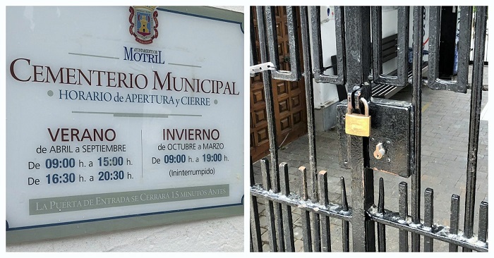 “Que un miércoles como ayer, a las cinco o las seis de la tarde, te encuentres las puertas del Cementerio cerradas con cadenas cuando el horario es de cuatro y media a ocho y media, deja a cualquiera desconcertado primero y, después, enfadado, sobre todo si has venido desde la otra punta de Motril andando o en autobús. Y más cuando no hay ningún cartel que avise del cierre”, ha lamentado el edil del PSOE.