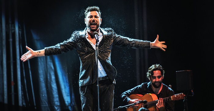 La ‘Oda a Walt Whitman’, rescatada de un poema de Federico García Lorca, inició todo un espectáculo de cante flamenco, poesía y canción andaluza por parte de una de las voces más particulares e interesantes del flamenco actual, como es la de Miguel Poveda. El cantaor catalán ha recalado este sábado en Motril dentro de la programación de conciertos de Ciclo en Vivo para ofrecer todo un espectáculo musical que se celebró sin incidentes y con todas las medidas de seguridad.