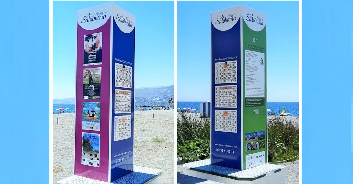 El área de Turismo del Ayuntamiento de Salobreña ha dado una nueva vida a unos monolitos colocándolos en la playa con información turística, de ocio y con las actividades culturales que se celebran en el municipio.