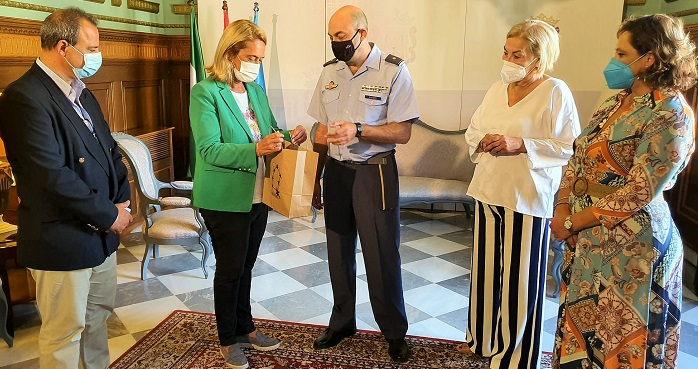 El Comandante José Luis Rando Guirado, Jefe del EVA 9, ha hecho hoy entrega a la alcaldesa de Motril, Luisa María García Chamorro, de un recuerdo conmemorativo del cincuentenario de la creación del escuadrón y su ubicación en el municipio motrileño.
