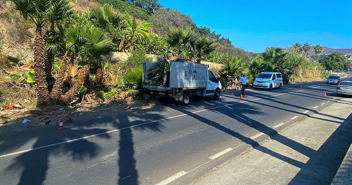 El Ayuntamiento de Motril ha iniciado esta semana los trabajos de desbroce de cañas y vegetación de los márgenes de la Ronda de Poniente tras la adjudicación del contrato a una empresa motrileña por un importe cercano a los 15.000 euros. La alcaldesa de Motril, Luisa María García Chamorro, acompañada del concejal de Limpieza, Jesús Jiménez, han visitado hoy la zona para comprobar el avance de esta intervención «en la que se está acometiendo una importante limpieza de terrenos así como la poda de palmeras y tratamiento de herbicidas en varios espacios».